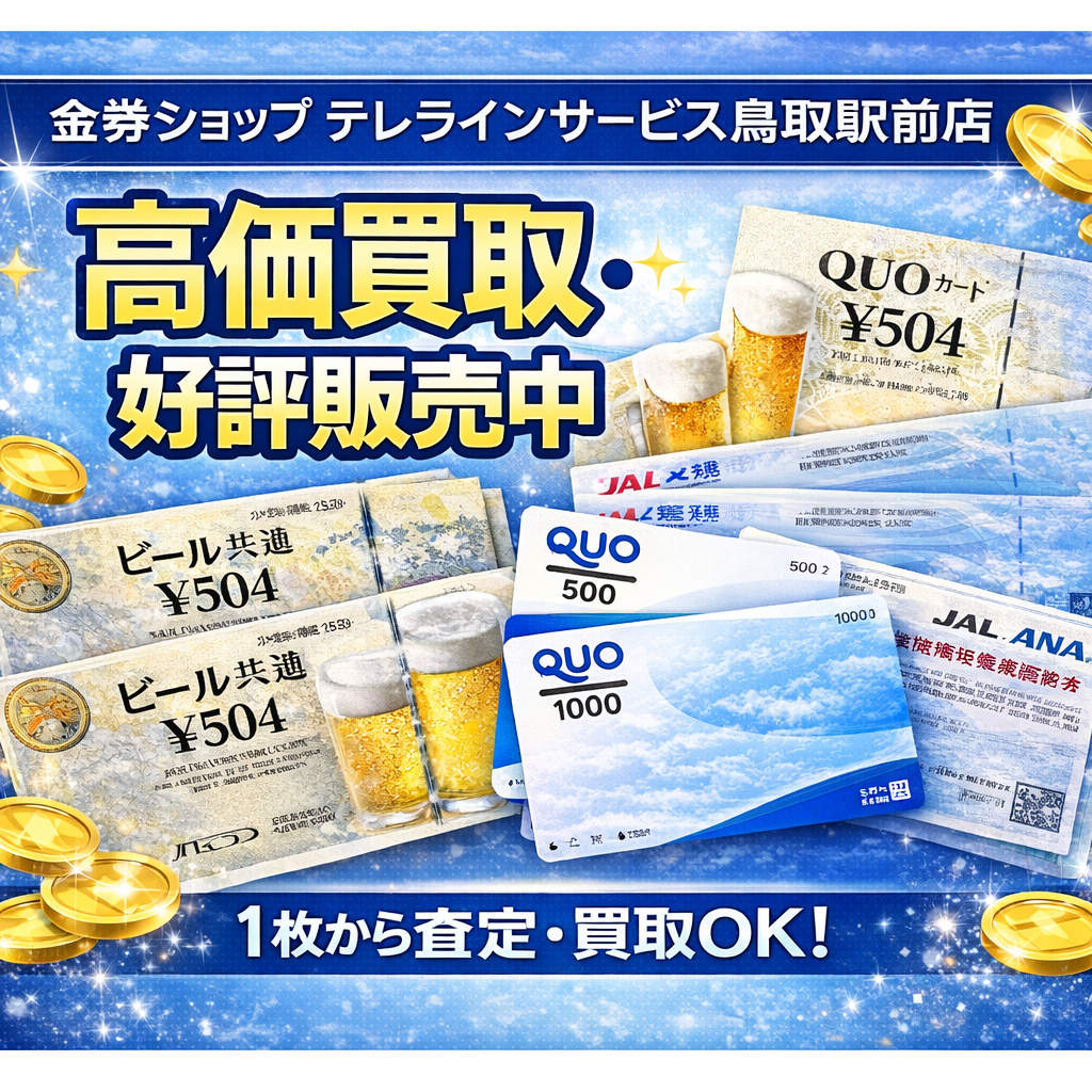 🎫【鳥取駅前の金券ショップ】ビール券・クオカード高価買取中|株主優待券も好評販売中!